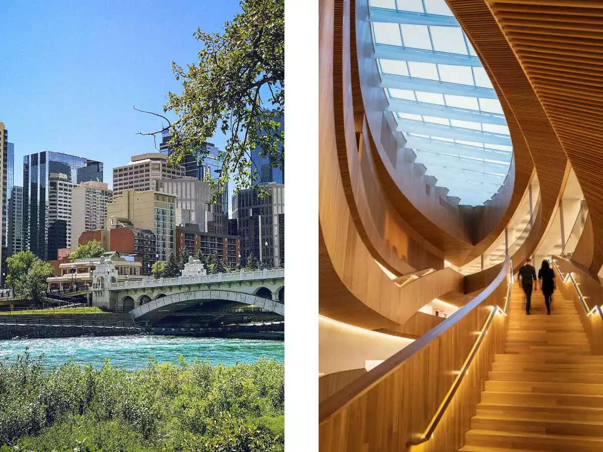 Left: The Bow River and downtown Calgary | Credit: Nataliia Kvitovska on Unsplash