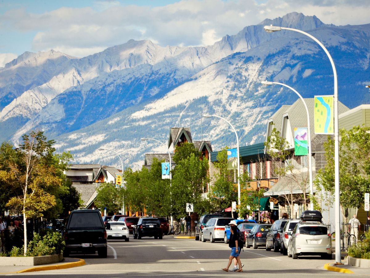 Downtown Jasper below towering mountains | Credit: Tourism Jasper