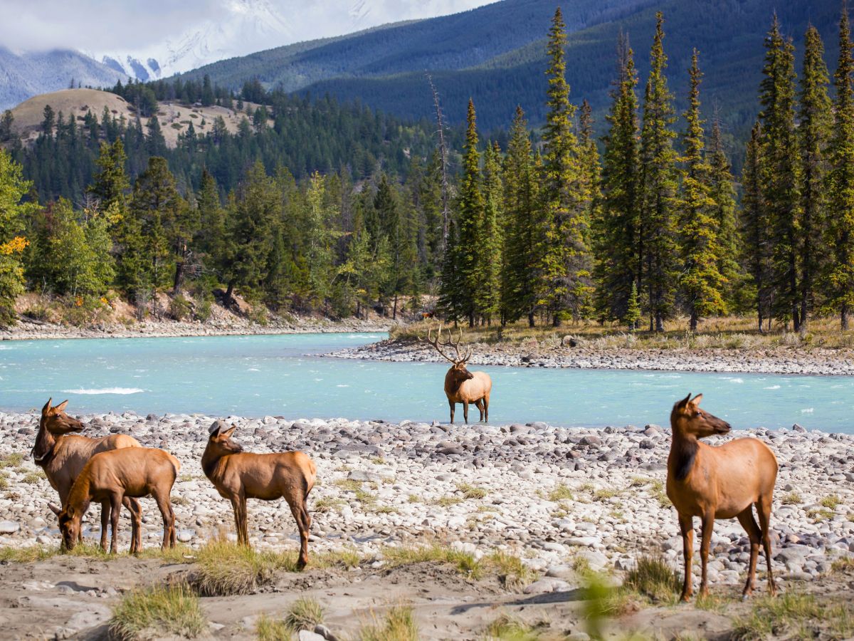 Elk by a glacial river in the Canadian Rockies | Credit: Rocky Mountaineer