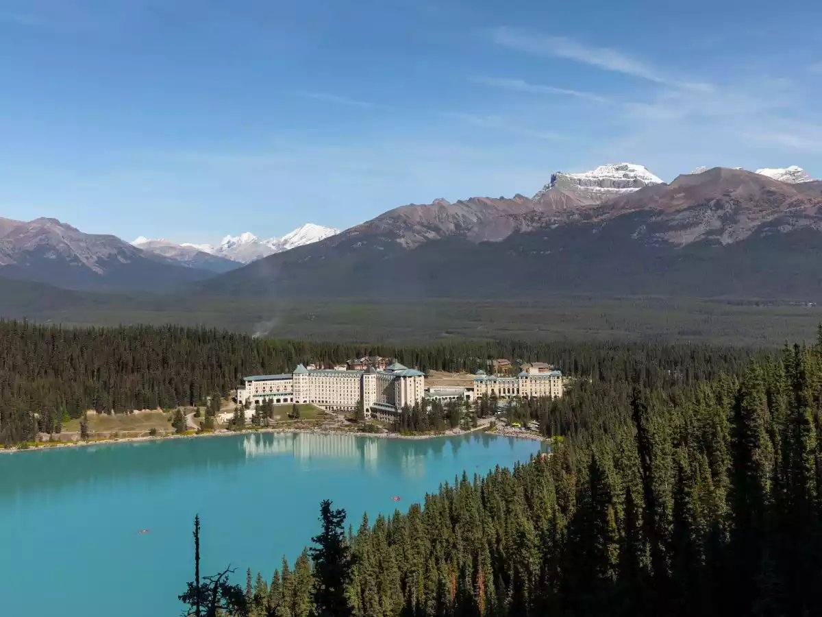 Fairmont Chateau Lake Louise on the edge of the water | Credit: Rocky Mountaineer