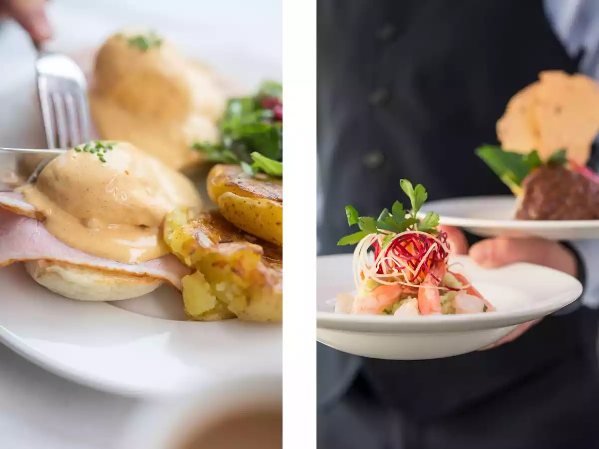 From left to right: breakfast and lunch onboard Rocky Mountaineer | Credit: Rocky Mountaineer