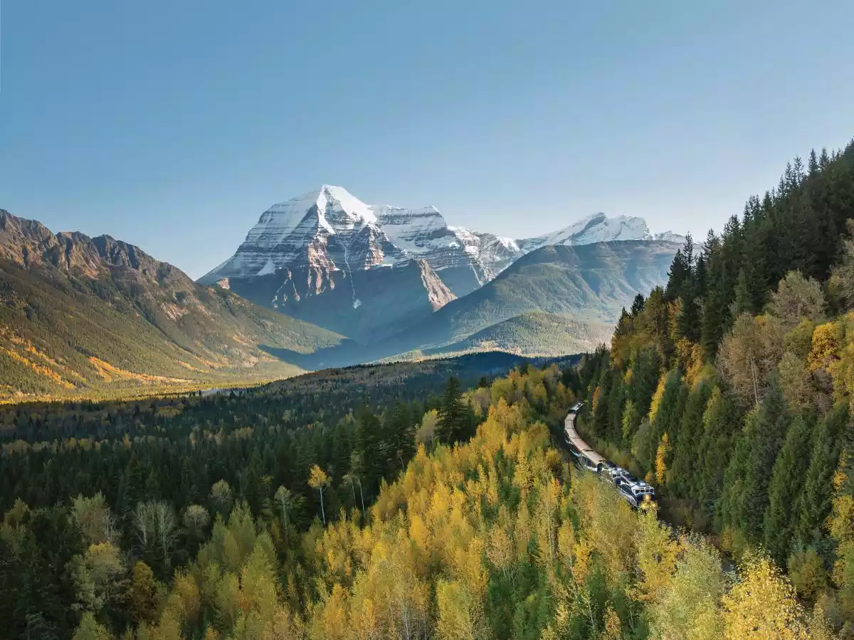 Rocky Mountaineer passing Mount Robson on the Journey through the Clouds route | Credit: Rocky Mountaineer