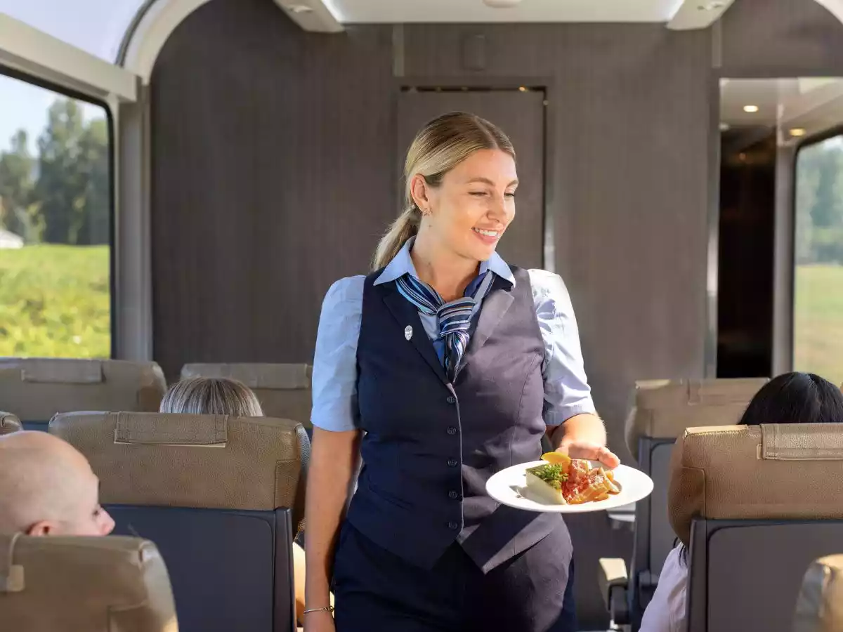 A Host offering attentive service to her passengers | Credit: Rocky Mountaineer