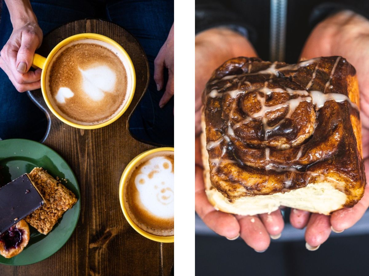The drinks and treats at Lostlands Cafe (featuring the famous sticky cinnamon bun)