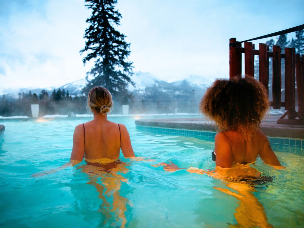 Steam rises from the outdoor hot pool, billowing into the cold air. It’s like the clouds gathering among the peaks, floating above valleys. You sit there, looking out at it all — the snow blanketing the mountains, the dense pine forests, the winter splendor — wondering how you found yourself in a hot bath in a little mountain town. But you’re so glad you did.