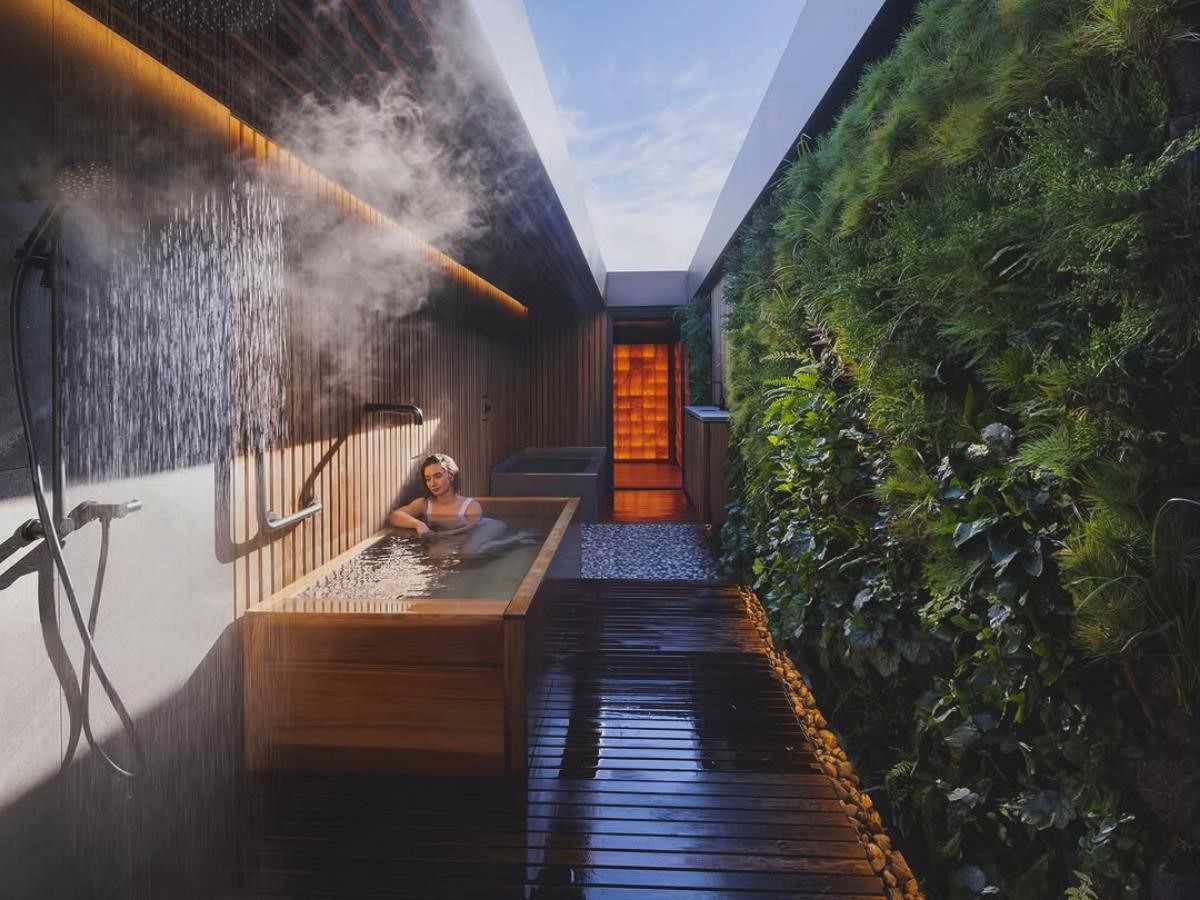 Any industrial atmosphere simply melts away as you step into your own private (and, might we note, clothing-optional) pod for one or two. There, you will be welcomed into a world of luxury as you take a self-guided circuit of rain showers, hot and cold soaks in stunning natural cedar tubs, ‘wellpod’ sauna experience, and open-air reflexology on riverbed stones.
