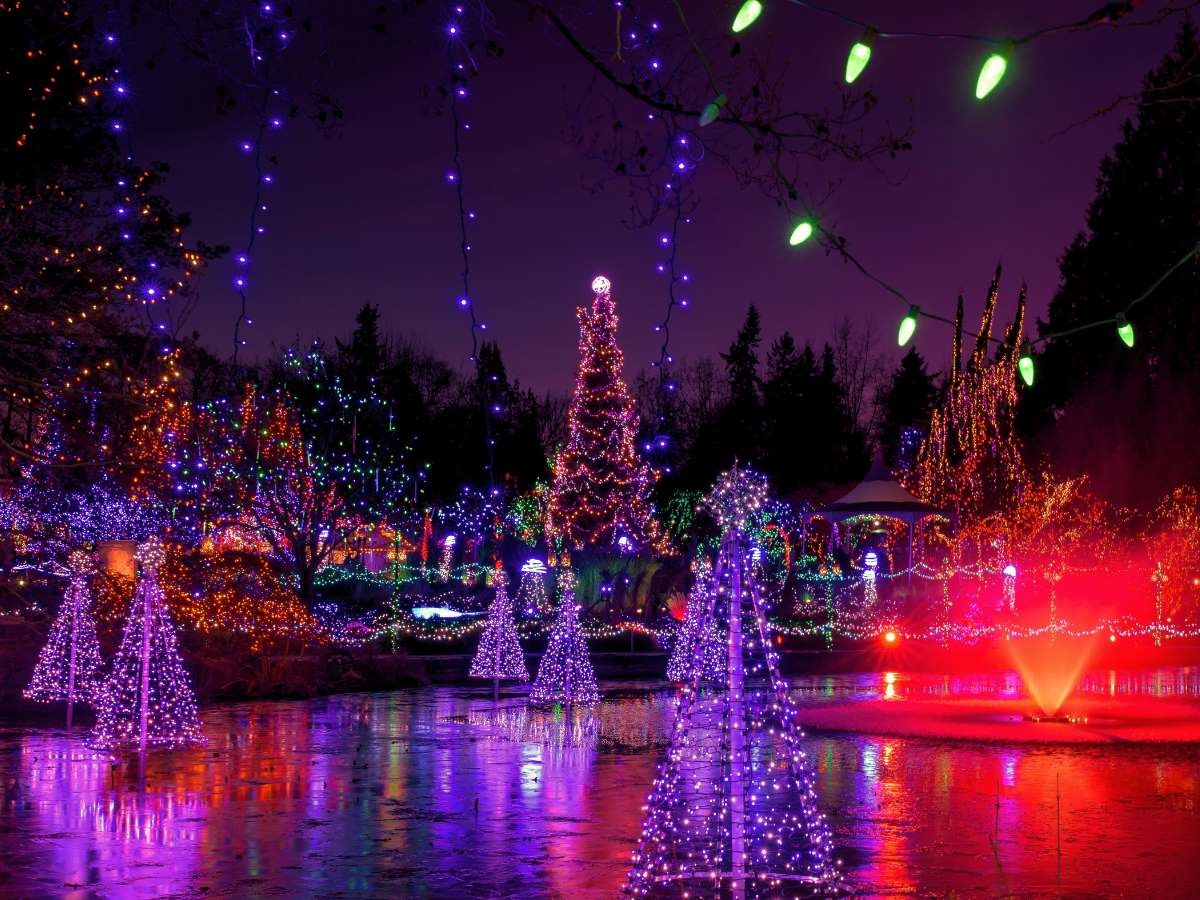 In Stanley Park, the thick pine forest is aglow (not unlike several hundred Christmas trees) during their Bright Nights celebration. A Christmas train runs through the display but is very popular.