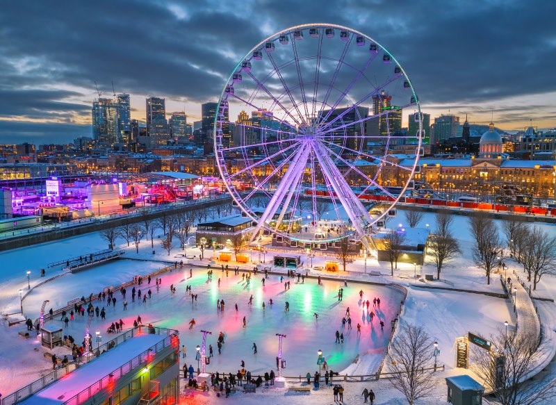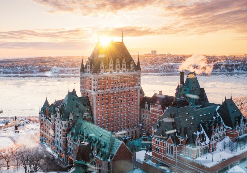 Begin your Eastern Canada winter adventure in Toronto, where the city’s festive atmosphere sets the tone for the journey ahead. As you board the train to Montreal you’ll pass through Ontario’s snowy landscapes, arriving in a city that truly embraces the winter season. Montreal in winter is a city of contrasts—its European charm enhanced by the crisp winter air. Wander through the cobblestone streets of Old Montreal, where the buildings are adorned with twinkling lights, or warm up with a glass of mulled wine at one of the city’s many holiday markets.